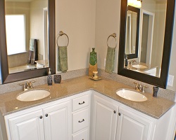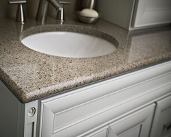 Vanity tops or bathroom countertops are not immune from a harsh environment, particularly in a full bathroom with a shower and/or tub. First, dealing with the moisture generated from showers. Second, dealing with all the stuff normally found in a bathroom such as toiletries and cleaning supplies. When you think about all the challenges can be faced in choosing your countertop, it is easy to understand that not only should consider about their beauty, but also their durability.